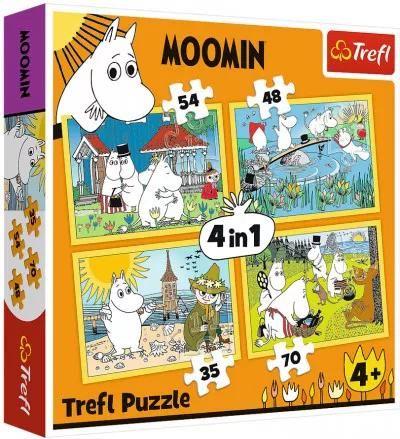 Puzzle 4w1 Wesoły Dzie Muminków 35/48/54/70 elTrefl Wesoły dzie Muminków to puzzle dla dzieci składające si z 4 niezależnych układanek zaprojektowane z myślą o wszystkich fanach i fankach przygód Muminka i jego przyjaciółZróżnicowana liczba elementów (70 54 48 i 35) pozwala na zabaw zarówno młodszym jak i nieco starszym fanom puzzli Produkt został wykonany z wysokiej jakości naturalnych materiałów z zastosowaniem kalandrowanego papieru odbijającego światło dziki któremu układanie staje si jeszcze przyjemniejsze i łatwiejsze Puzzle zostały wyprodukowane w Polsce a do produkcji zostały wykorzystane ekologiczne materiaływysoka jakość nadrukuprecyzja wykonaniaidealne dopasowanie elementówodporne na zginanierozwijają zdolności manualne u dzieckakształtują wyobraźni i logiczne myśleniewymiary obrazka po ułożeniu: 29x21 cmilość elementów: 54483570