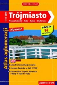 Atlas aglomeracji w skali 117 500. Zawiera aktualne informacje o komunikacji miejskiej centrum Gdańska w skali 17500 centrum Gdyni Sopotu Wrzecza i Oliwy w skali 110 000