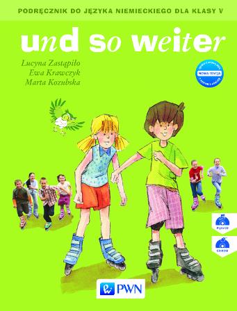 Otwarta formuła wieloletniego podręcznika und so weiter. Nowa edycja dla klasy piątej, pozwala prowadzić zajęcia w sposób elastyczny - nauczyciel realizuje wybrane moduły, kształtując lekcję według własnego scenariusza w rozkładzie zajęć 1h, 2h lub 3 h w tygodniu. Liczne gry i zabawy językowe pozwalają przeprowadzić oryginalną lekcję pełną niespodzianek , która motywuje uczniów do nauki niemieckiego przez zabawę. und so weiter. Nowa edycja dla klasy piątej to podręcznik dla uczniów szkół podstawowych, którzy w klasie czwartej rozpoczęli naukę języka niemieckiego z tą serią. Podręcznik dla klasy piątej zawiera: 6 podstawowych rozdziałów tematycznych dodatkowy rozdział z jednostkami realioznawczymi zawierającymi materiał leksykalny związany ze świętami obchodzonymi w krajach niemieckiego obszaru językowego scenariusz sztuki teatralnej Wir suchen Matrosen - do wykorzystania w klasowym przedstawieniu. niemiecko-polski słowniczek alfabetyczny. Stałymi częściami każdego rozdziału są: strona rozdziałowa wprowadzająca uczniów w tematykę rozdziału - zawierająca grę lub zabawę językową historyjki obrazkowe, ciekawe dialogi i teksty piosenka, dzięki której dzieci łatwiej zapamiętują nowe słowa i zwroty Für Intelligenzbestien - ćwiczenia wspierające znajomość gramatyki Für feine Ohren - zadania podnoszące umiejętność rozumienia ze słuchu Für Leseratten - zadania na rozumienie tekstu czytanego Schnellsprechverse - zabawne limeryki podnoszące sprawność mówienia.