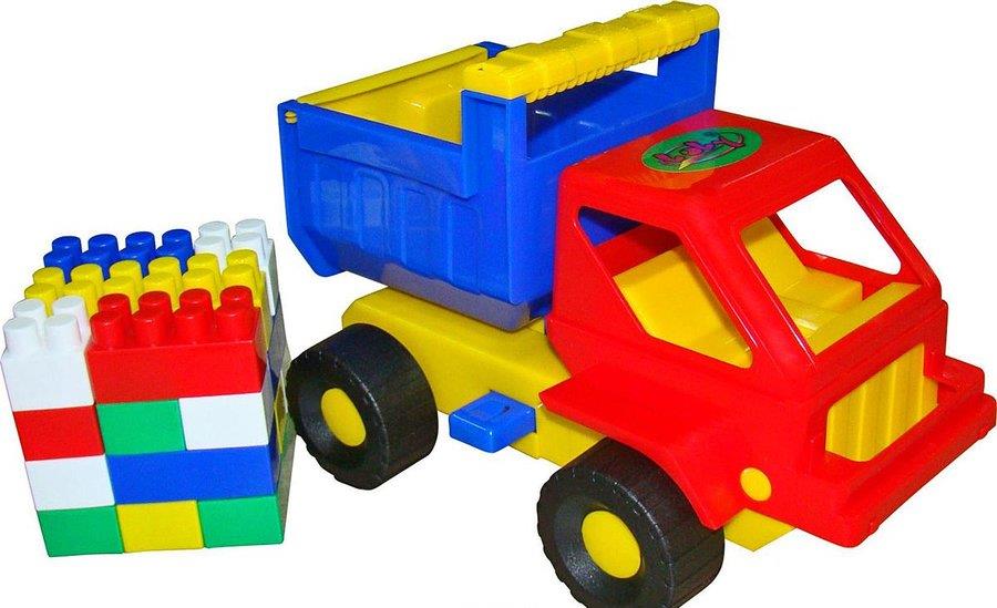 Zestaw Nr 16 czyli wywrotka KUZIA + klocki ""BUDOWNICZY"" składa się z pojazdu oraz kompletu osiemnastu kloców. Są one duże, kolorowe, w różnych rozmiarach. Idealnie pasują do rączek naszych najmłodszych pociech. Wszystkie mieszczą się w kontenerze samochodu. Wywrotka wyposażona jest w cztery szerokie koła ułatwiające jazdę po różnych nawierzchniach. Zarówno naczepa jak i szoferka są ruchome. Można je podnieść lub obniżyć. Naczepę w celu wysypania jej zawartości a kabinę kierowcy w celu dokonania ewentualnych napraw. Za kierownicą znajdzie się również miejsce na ulubioną, niewielką figurkę. Na przednim zderzaku wywrotki jest miejsce, do którego można przywiązać sznurek i pojazd ciągnąć."