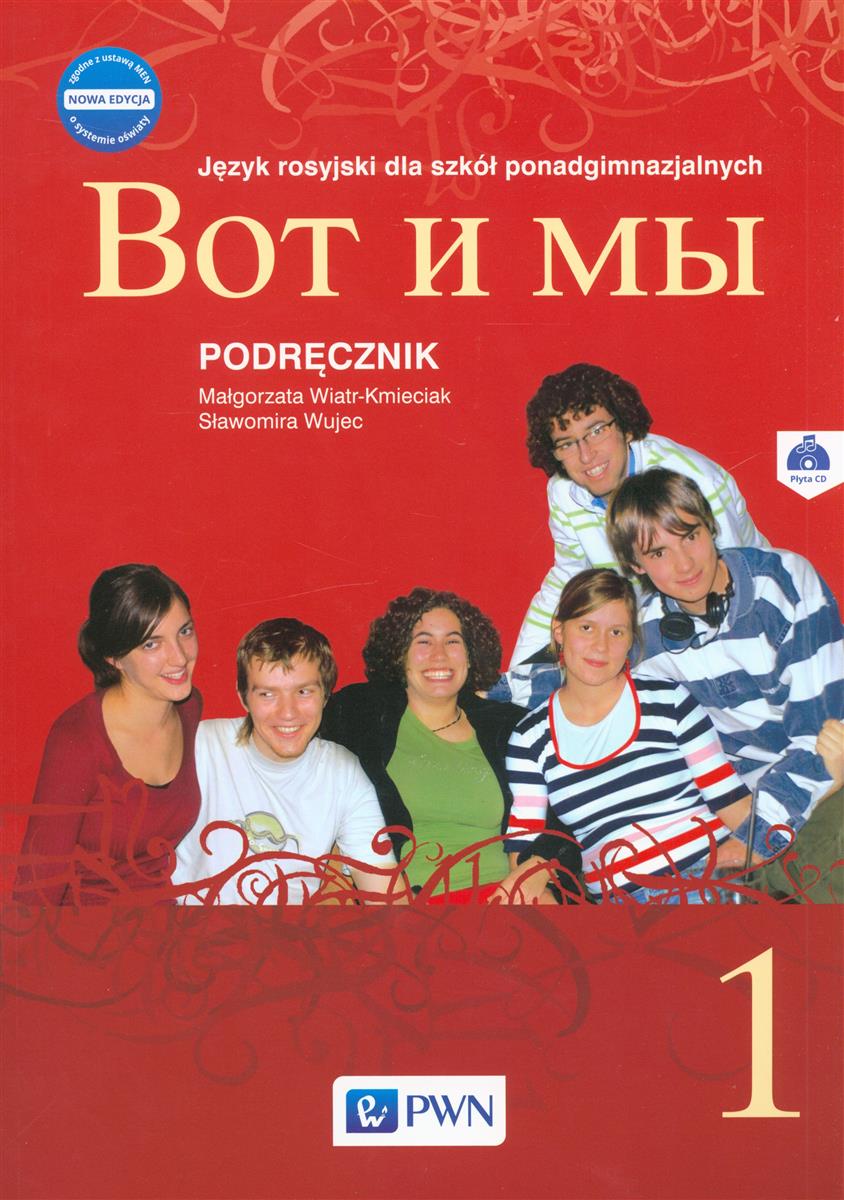 Numer dopuszczenia: 294/1/2011/2015Wieloletni podręcznik „Wot i my 1. Nowa edycja” systematycznie i równocześnie rozwija wszystkie sprawności językowe: słuchania, czytania, mówienia i pisania, interakcji i interkulturową. Podręcznik zawiera nowoczesne słownictwo i autentyczne dialogi oraz dostarcza wiedzy o współczesnej Rosji i życiu Rosjan. „Wot i my 1. Nowa edycja” składa się z:• rozdziału „0”, wprowadzającego alfabet rosyjski,• pięciu rozdziałów podzielonych na 5 lekcji,• jednostek powtórzeniowych,• sekcji poświęconych egzaminowi maturalnemu,• rozdziału realioznawczego,• komentarza gramatycznego,• słowniczka polekcyjnego.Do podręcznika dołączona jest płyta audio z nagraniami tekstów do zadań na rozumienie ze słuchu.