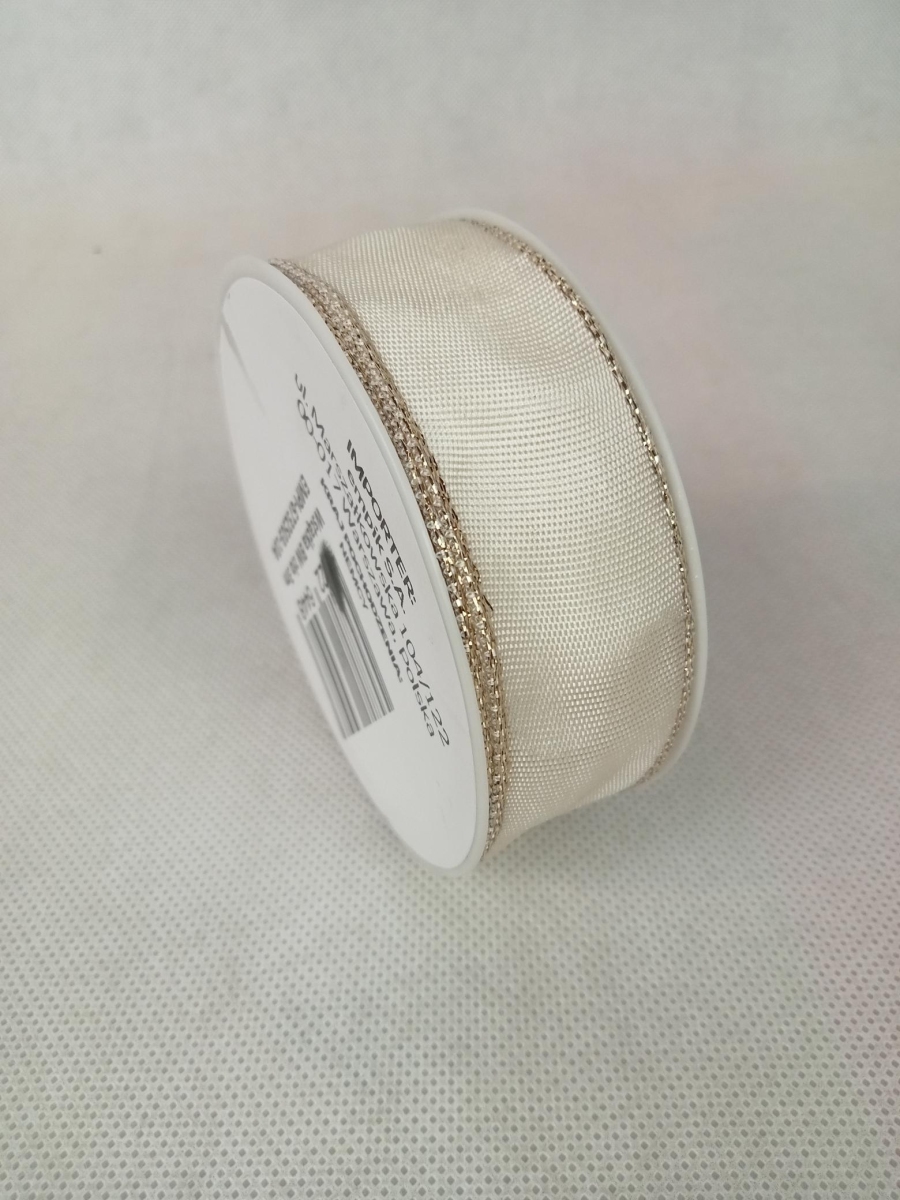 wstążka satynowa z pozłacanymi krawędziami do pakowania prezentów i dekoracji kolory: kremowy długość 3 m, szerokość 25 mm Produkt może mieć uszkodzone opakowanie lub naruszoną plombę fabryczną opakowania.