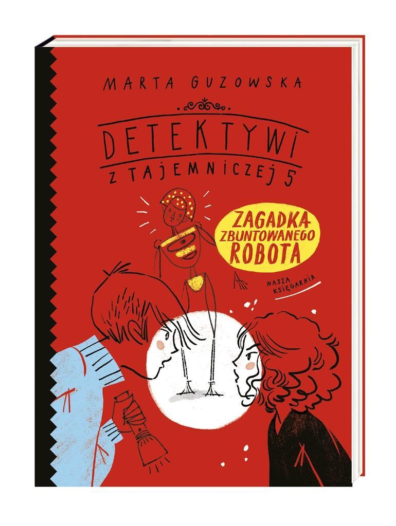 Czwarty tom serii detektywistycznej o młodych śledczych z Tajemniczej 5!Anka, Piotrek i Jaga są na wycieczce w Centrum Nauki Kopernik. Nie mogą się już doczekać przedstawienia słynnego teatru robotycznego – adaptacji bajki Stanisława Lema. Ku zdumieniu publiczności podczas spektaklu ginie jednak bez śladu mechaniczny aktor. Czy Anka i Piotrek rozwiążą tę dziwną sprawę i odnajdą porywacza? A może rację ma Jaga, która uparcie twierdzi, że robot się zbuntował… i uciekł?„Detektywi z Tajemniczej 5” zostali wymyśleni na wyraźne życzenie dzieci Marty Guzowskiej – dotąd autorki powieści kryminalnych dla dorosłych. Seria książek o śledztwach Anki i Piotrka łączy przygodową fabułę, elementy wiedzy o nauce i sztuce oraz interaktywną formę, gdyż każdy tom wymaga od czytelnika logicznego myślenia i rozwiązywania zagadek.Marta Guzowska – planuje przeżyć dziewięć żyć – jak kot. Na razie ma na koncie trzy: jest archeolożką, pisarką i mamą. Za swoje powieści kryminalne i sensacyjne dla dorosłych otrzymała cztery nominacje do Nagrody Wielkiego Kalibru oraz nagrodę główną. „Detektywi z Tajemniczej 5” to jej pierwsza seria książek dla najmłodszych. Według samej autorki „dla dzieci pisze się o wiele trudniej, bo mają detektor ściemy”.Agata Raczyńska – jedną ręką głaszcze swoje alpaki, a drugą rysuje. Całe szczęście, że ma dwie ręce i nie musi wybierać… Spośród zilustrowanych przez nią książek z największym uznaniem spotkały się dotąd Gry i zabawy z dawnych lat (2016). Zdobyły wyróżnienie w konkursie PTWK Najpiękniejsze Książki Roku, nominację do Pióra Fredry oraz nominację w konkursie Książka Roku Polskiej Sekcji IBBY.
