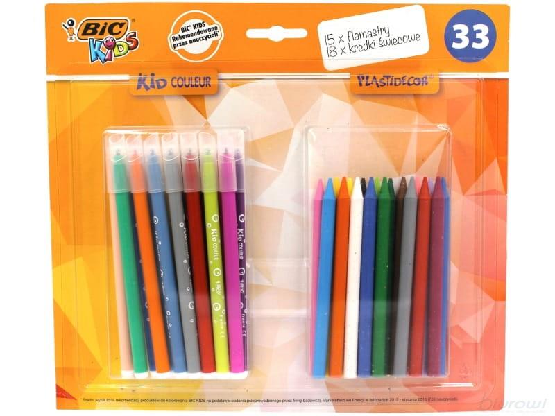 ZESTAW FLAMASTRY + KREDKI ŚWIECOWE BIC 33 SZT