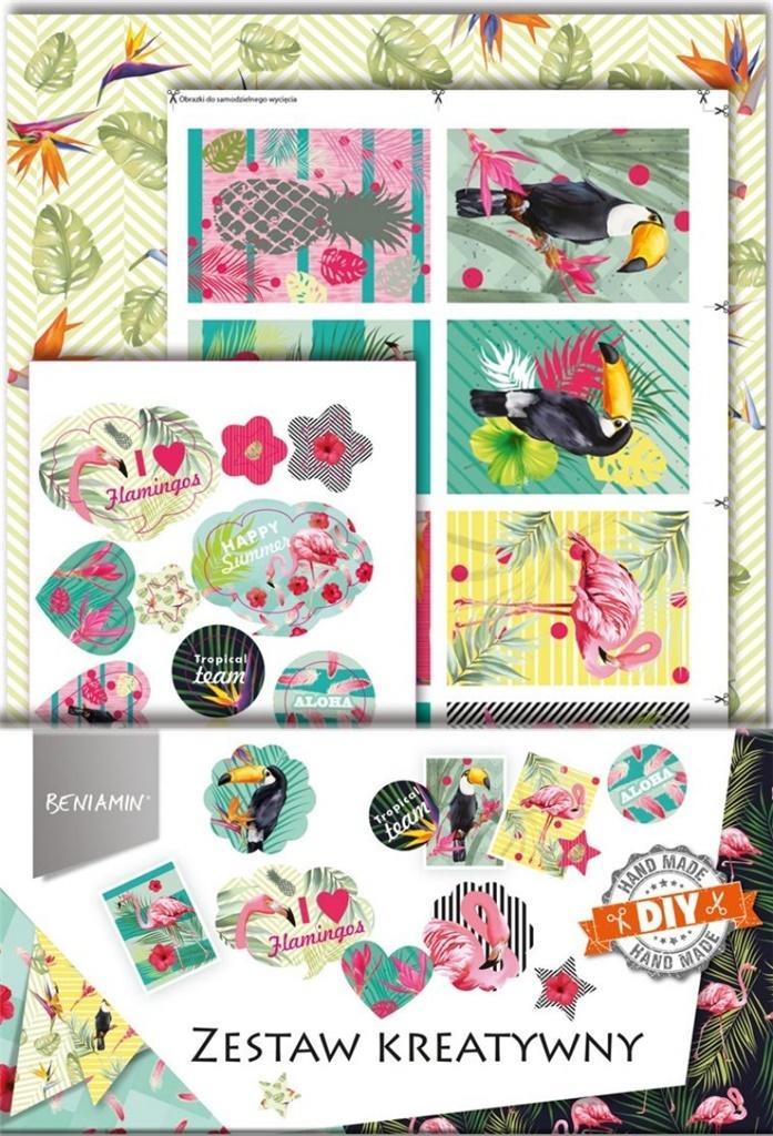 ZESTAW KREATYWNY / FLAMING ZAWIERA: 4X A4 PAPIER OZDOBNY KARTON 4X A4 PAPIER OZDOBNY 8 OBRAZKÓW 52 NAKLEJKI 1X A4 PAPIER SAMOPRZYLEPNY ZŁOTY 1X A4 PAPIER SAMOPRZYLEPNY SREBRNY 1X A4 KALKA KREŚLARSKA 1X A4 PAPIER SZARY PRŻKOWANY 1X A5 SZABLON Z WYCIĘTYMI WZORAMI.
