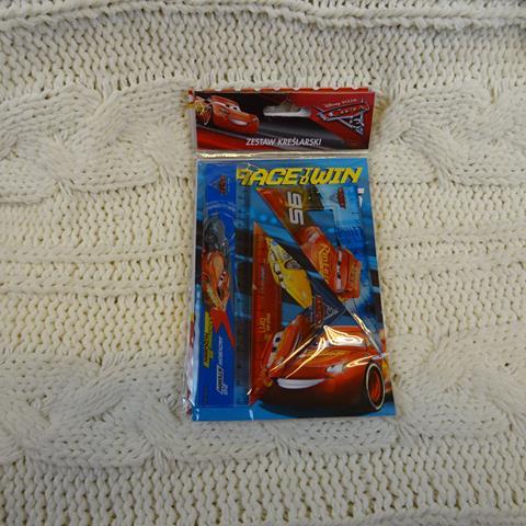 ZESTAW KREŚLARSKI- AUTA Zestaw zawiera 1 linijkę, 2 ekierki. St. Majewski