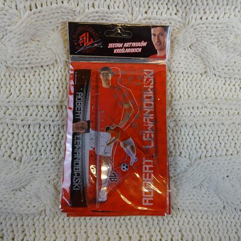 ZESTAW KREŚLARSKI- ROBERT LEWANDOWSKI Zestaw zawiera 1 linijkę, 2 ekierki. St. Majewski.