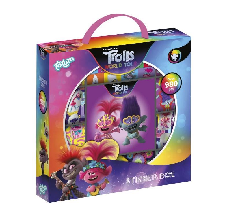 Naklejki z serii Trolls World TourZestaw zawiera ponad 980 naklejek oraz mały notesik, idealny do twórczej zabawy. Całość zapakowana jest w wygodną kartonową walizeczkę, co ułatwia przechowywanie i transport.