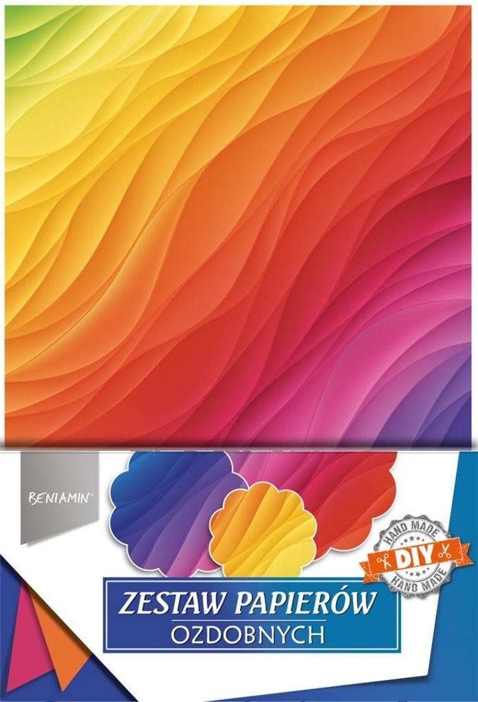 PAPIERY ozdobne TĘCZA 20 ark., format A4 1 x KARTON metalizowany 1 x KARTON ozdobny uszlachetniony 4 x PAPIER samoprzylepny metalizowany 4 x PAPIER samoprzylepny 5 x PAPIER powlekany uszlachetniony 5 x PAPIER powlekany.