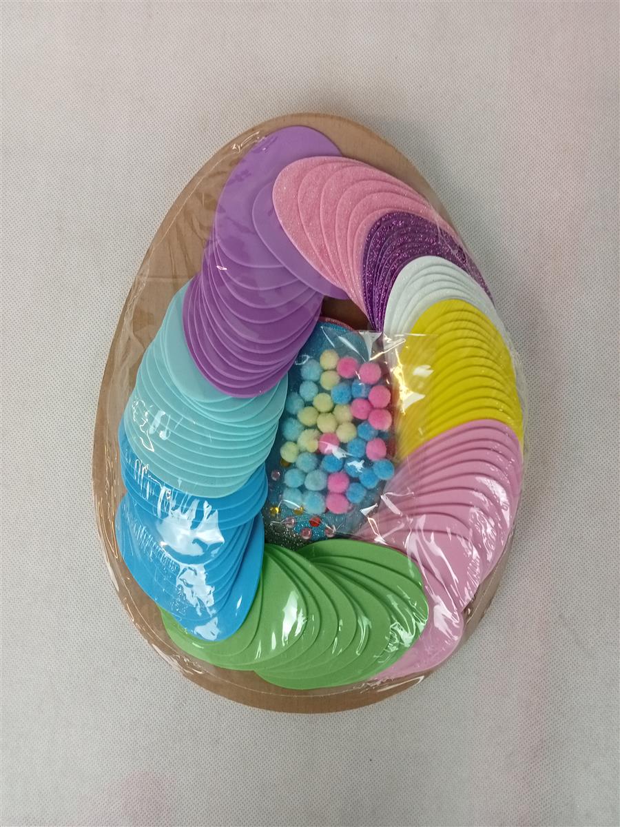 Zestaw zawiera: piankowe kształty jaj w różnych kolorach cekiny pompony Produkt może mieć uszkodzone opakowanie lub naruszoną plombę fabryczną opakowania.