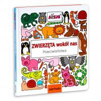 Książka zaprzyjaźnia maluchy ze światem zwierząt. Pomaga dostrzec, co je łączy, a co dzieli, oraz szybko zapamiętać ich nazwy.?W książeczce zwierząt wielka jest gromada, znajdziesz tu słonia, jeża, a nawet owada:jedne są małe, inne ? duże,jedne na dole, a inne w górze,to właśnie są przeciwieństwa,na czym polega sztuczka?żeby znaleźć ich dziesięć,i na każdej stronie ? żuczka! Książeczka jest przeznaczona dla dzieci od 30 miesiąca życia.